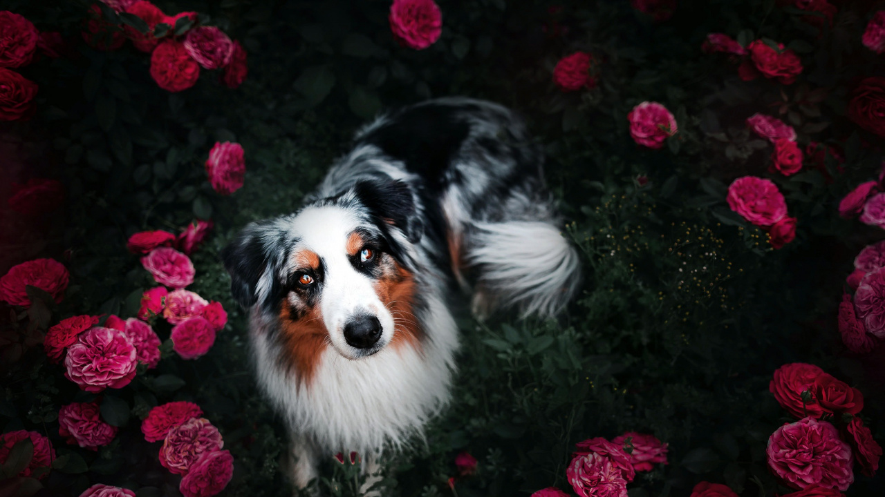 Обои 1280x720 Австралийская овчарка, бордер колли, пес, собака породы, собака компаньон, HD, HDV, 720p, 16:9 картинка