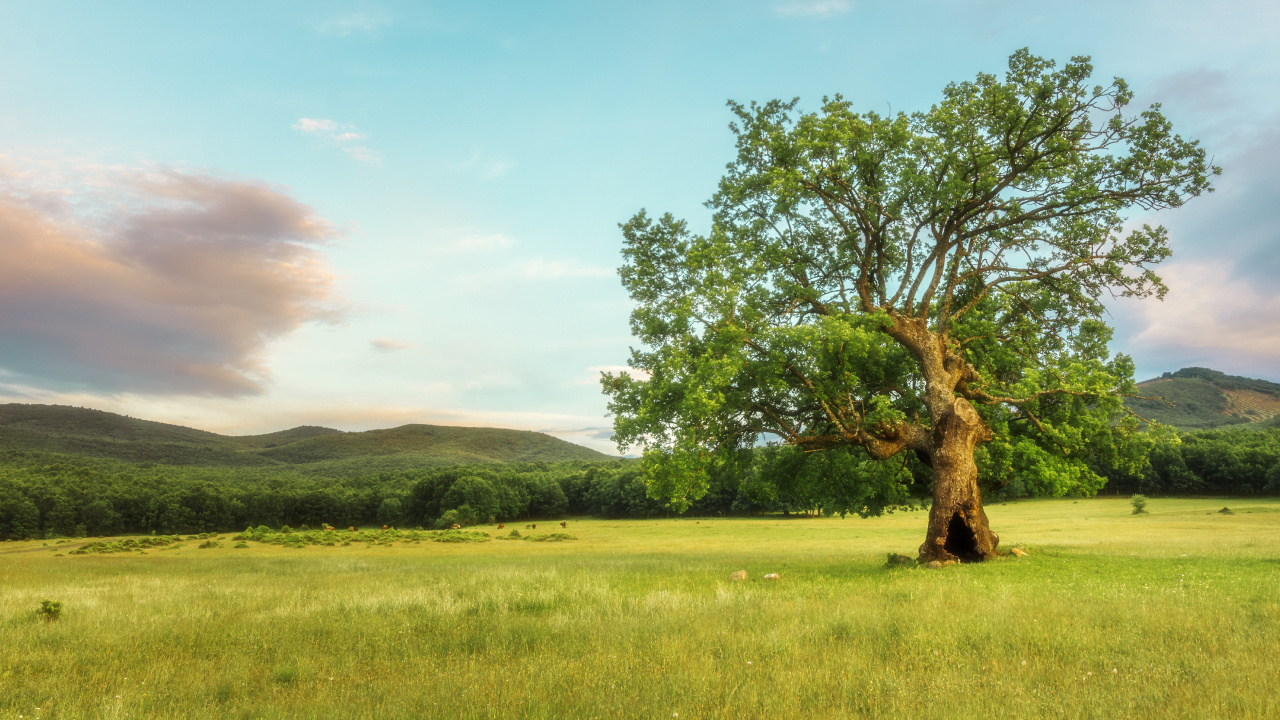 Обои 1280x720 поле, дерево, луг, выгон, сенокосное угодье, HD, HDV, 720p, 16:9 картинка