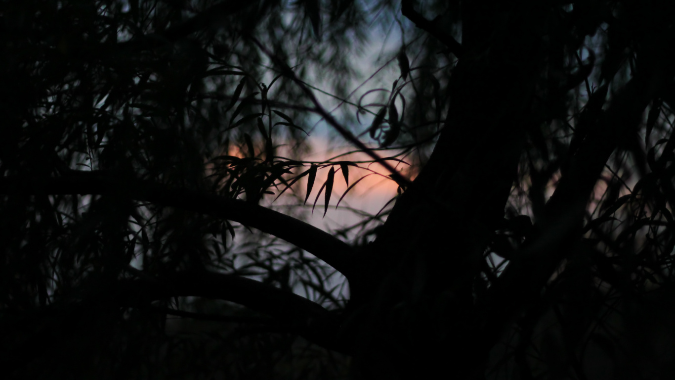 Обои 1366x768 черный, темнота, ветвь, природа, дерево, HD ready картинка