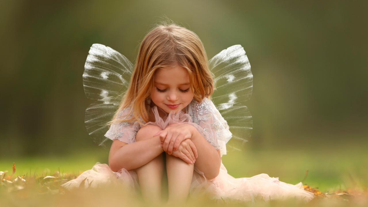 Обои 1280x720 фея, ангел, счастье, девушка, трава, HD, HDV, 720p, 16:9 картинка