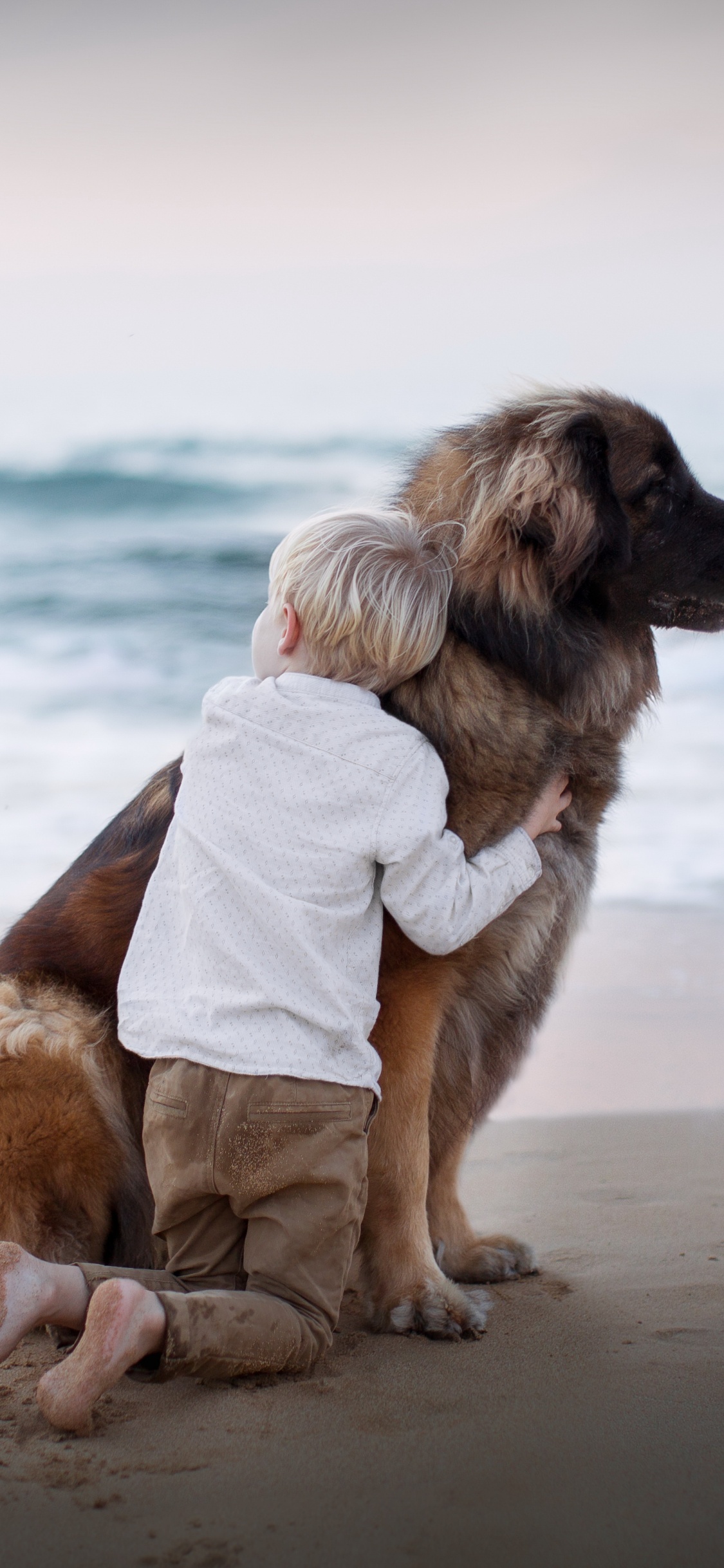 Обои пес, собака породы, пляж, море, песок для iPhone X / XS, заставка, 1125x2436 картинка
