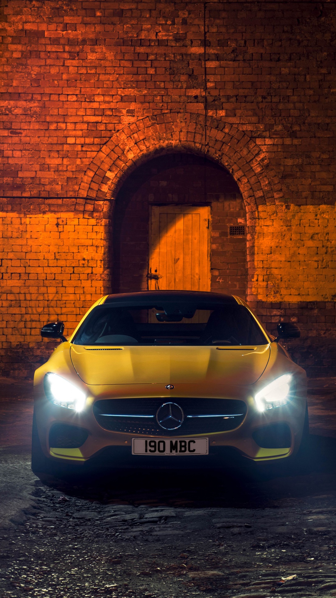 Обои авто, свет, желтый, городской автомобиль, mercedes benz sls amg на телефон Android, 1080x1920 Full HD картинки