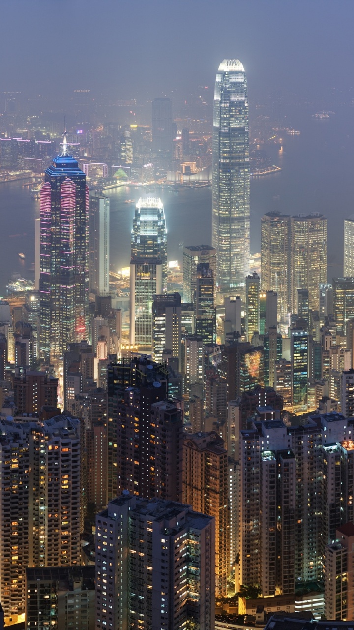 Обои пик Виктория, пик башни, Гавань Виктория, городской пейзаж, город для HD Samsung Galaxy S3/J3/J4/J5, Meizu M5, Sony Xperia L1/L2, заставка, 720x1280 картинка