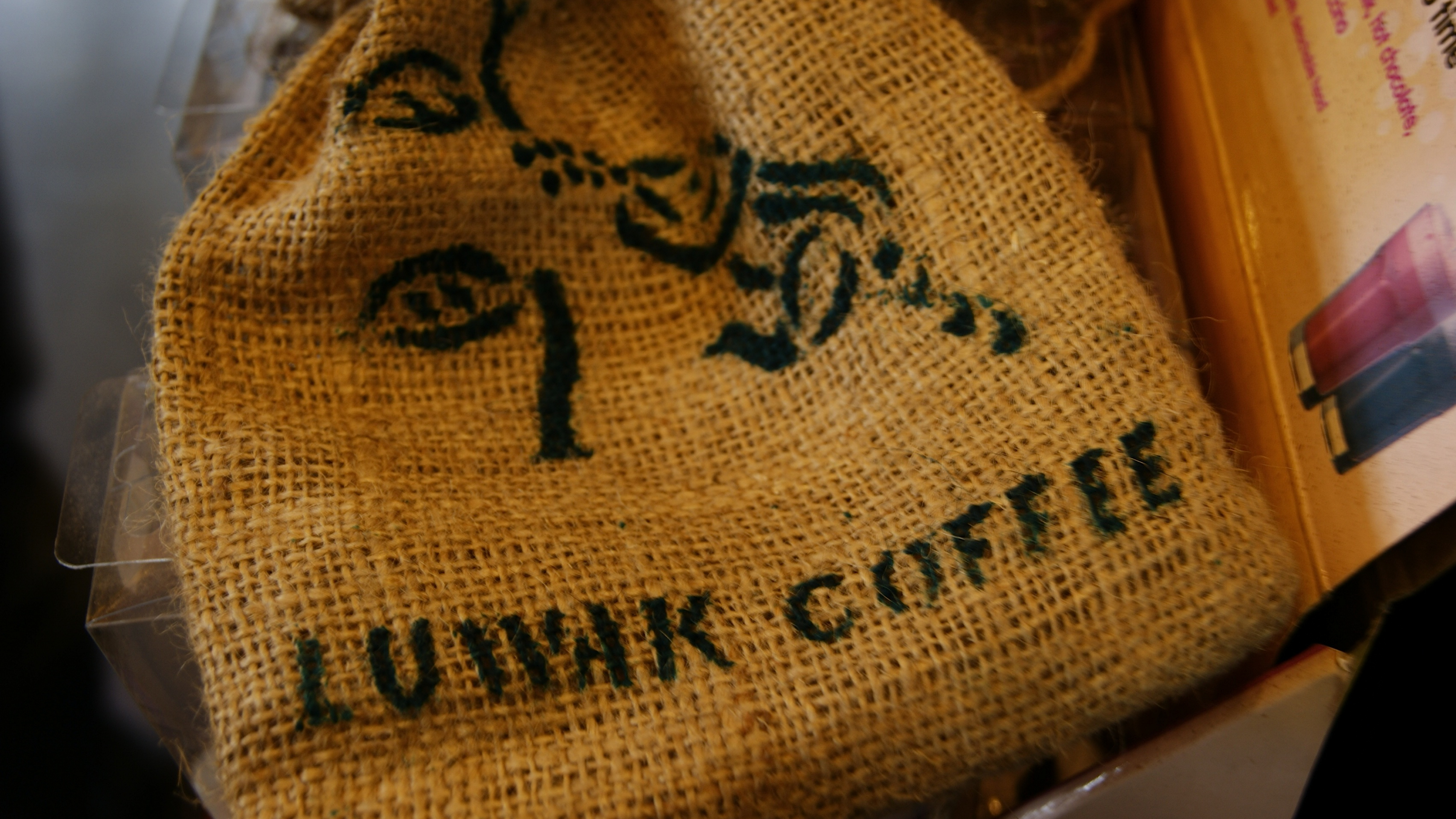 Обои 3840x2160 вышивание, копи лювак, нить, шрифт, азиатская пальмовая циветта, 4K Ultra HD картинка