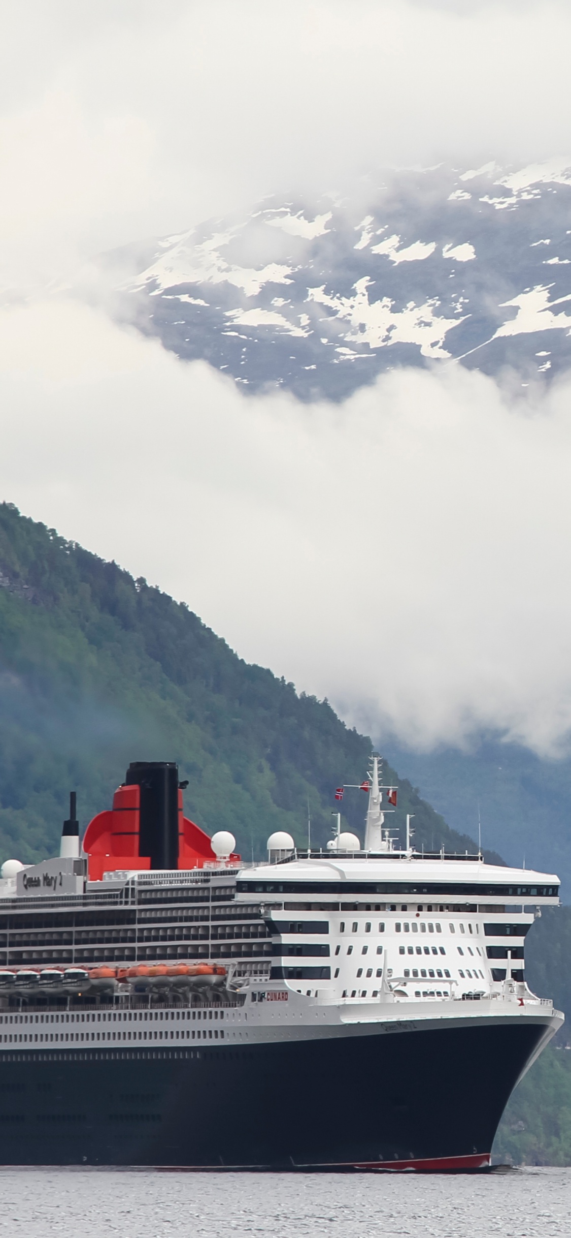 Обои корабль, круизное судно, пассажирское судно, фьорд, перевозка воды для iPhone X / XS, заставка, 1125x2436 картинка