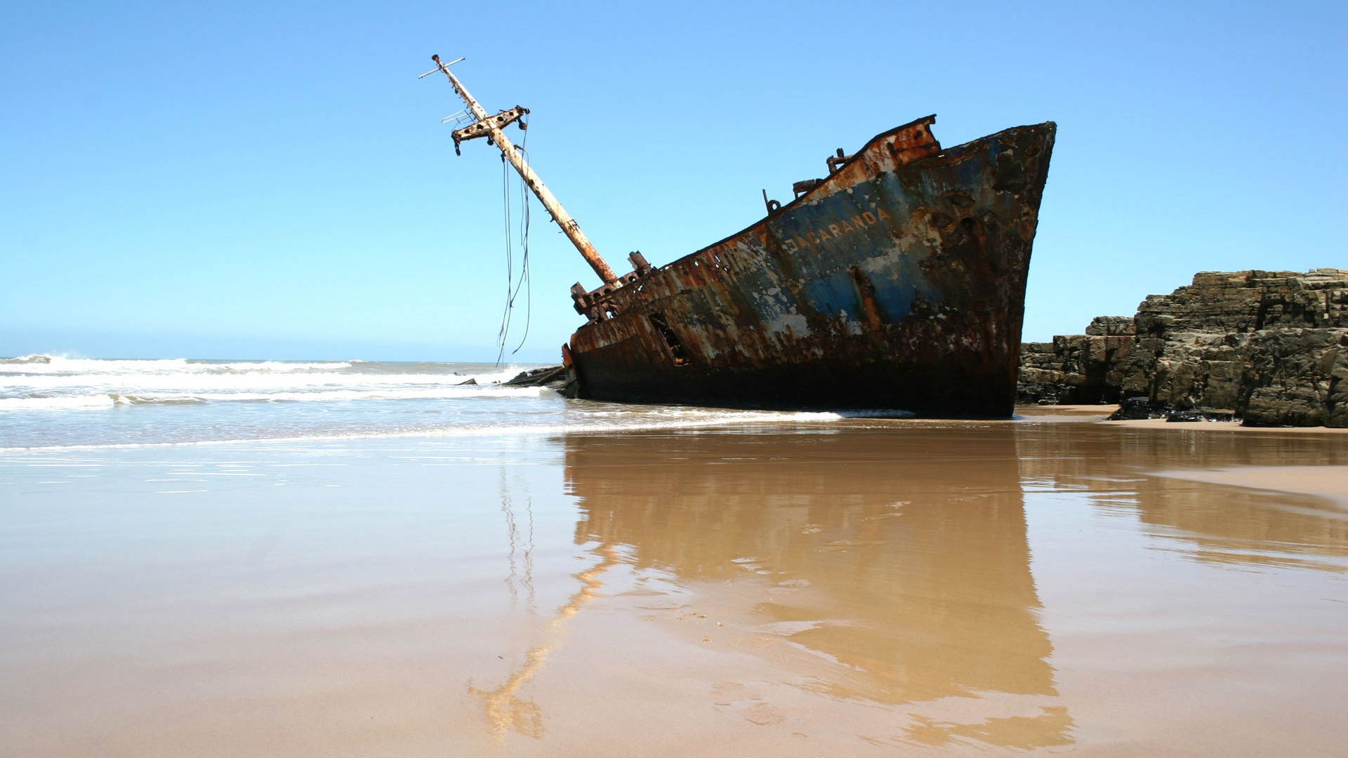 Обои 1920x1080 корабль, кораблекрушение, берег, побережье, лодка, Full HD, HDTV, 1080p 16:9 картинка