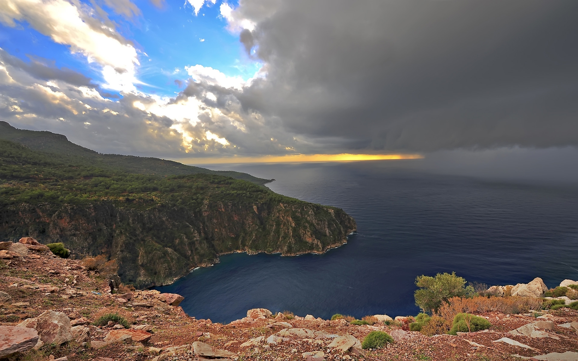 Обои море, побережье, облако, нагорье, облака, фото, заставка
