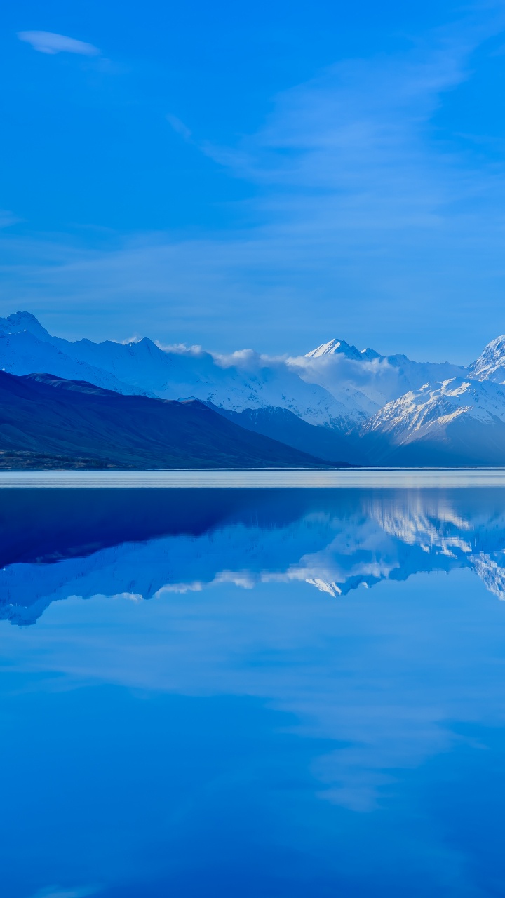 Обои озеро пукаки, озеро, горный хребет, отражение, природа для HD Samsung Galaxy S3/J3/J4/J5, Meizu M5, Sony Xperia L1/L2, заставка, 720x1280 картинка