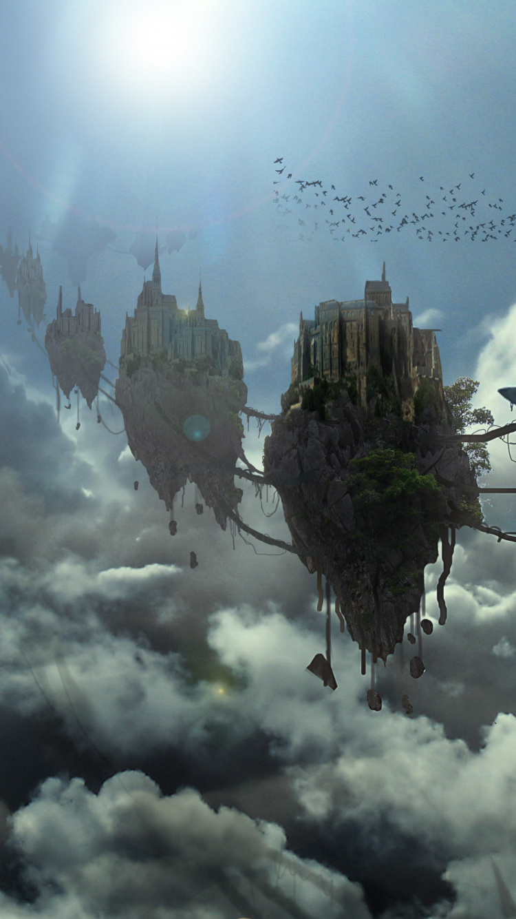 Обои мир, облако, атмосфера, дерево, цифровая живопись для iPhone 6, 6S, 7, 8, заставка, 750x1334 картинка