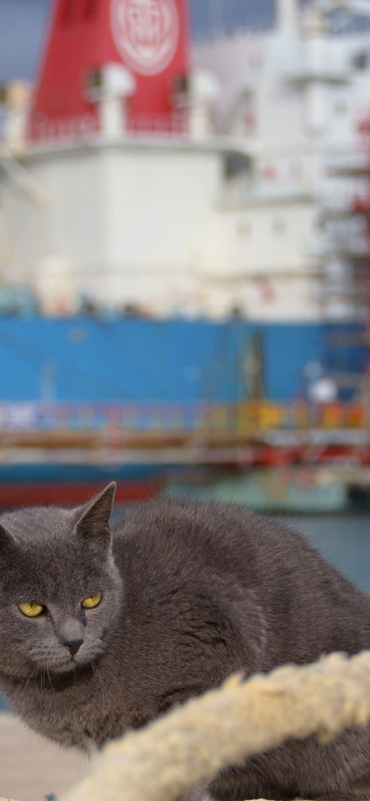 Обои море, судно, кошки малого и среднего размера, лодка для iPhone XS Max, заставка, 1242x2688 картинка