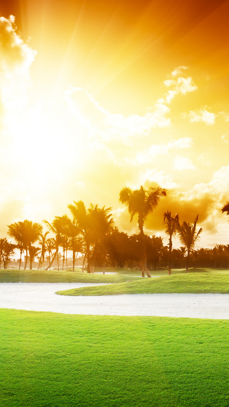 Обои площадка для гольфа, гольф, природа, дневное время, солнечный свет для iPhone 6, 6S, 7, 8, заставка, 750x1334 картинка