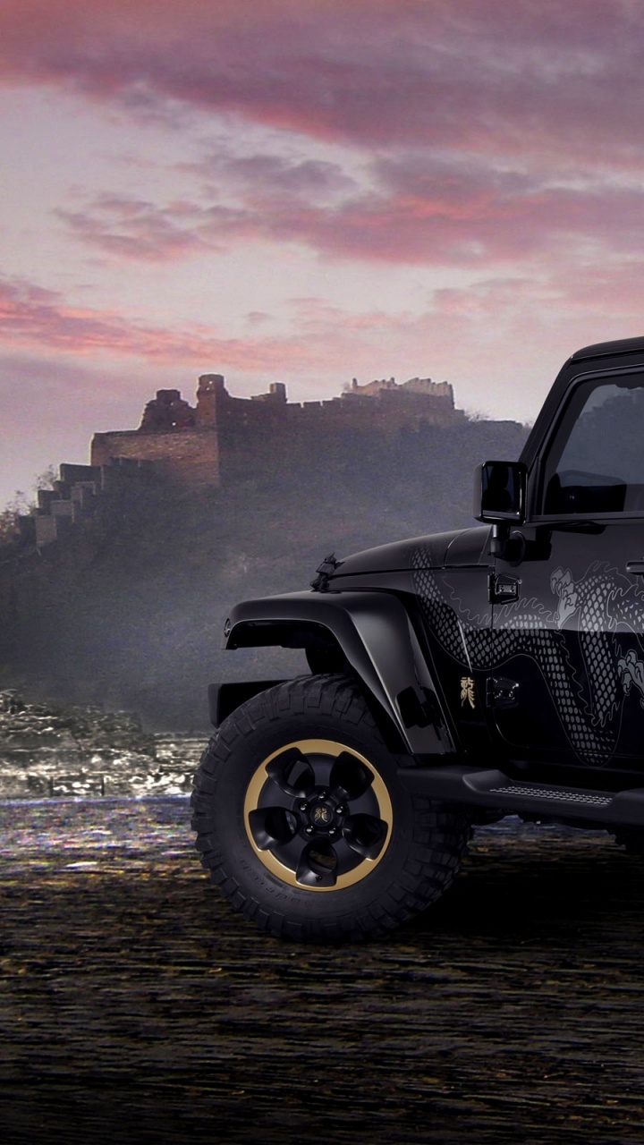 Обои джип, автомобильные шины, Офф-роуд, jeep wrangler, черный для HD Samsung Galaxy S3/J3/J4/J5, Meizu M5, Sony Xperia L1/L2, заставка, 720x1280 картинка