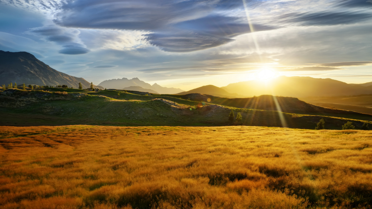 Обои 1280x720 нагорье, сенокосное угодье, холм, облако, поле, HD, HDV, 720p, 16:9 картинка