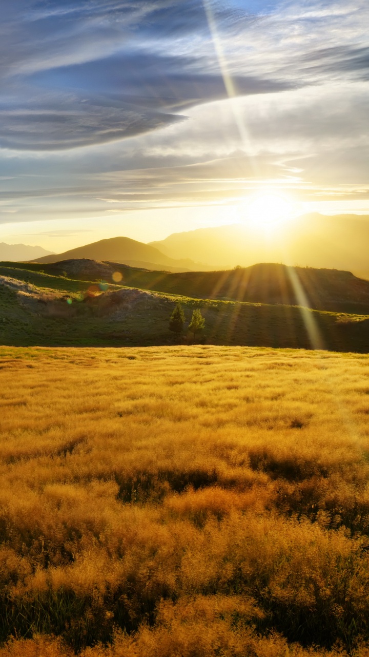 Обои нагорье, сенокосное угодье, холм, облако, поле для HD Samsung Galaxy S3/J3/J4/J5, Meizu M5, Sony Xperia L1/L2, заставка, 720x1280 картинка