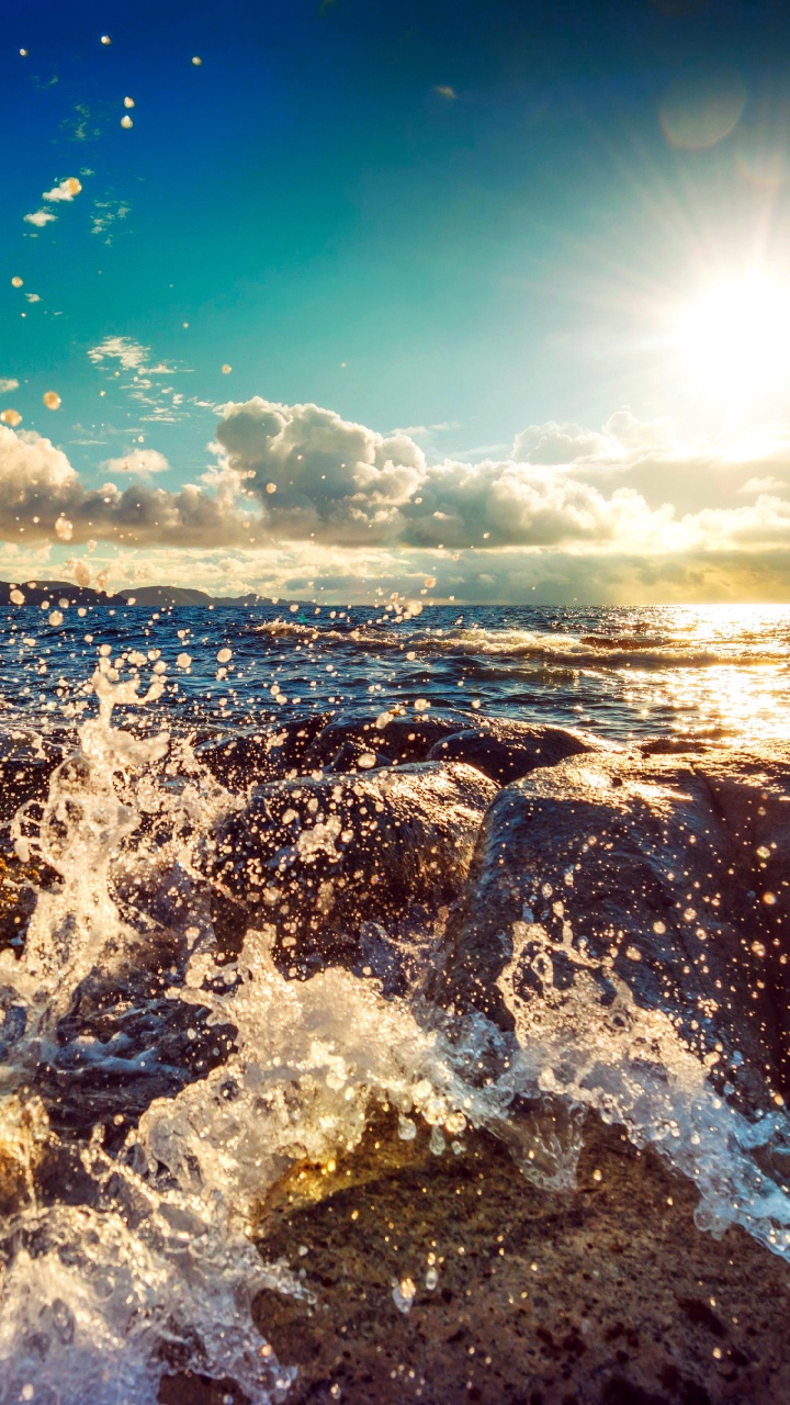 Обои океан, море, берег, волна, солнечный свет для HD Samsung Galaxy S3/J3/J4/J5, Meizu M5, Sony Xperia L1/L2, заставка, 720x1280 картинка