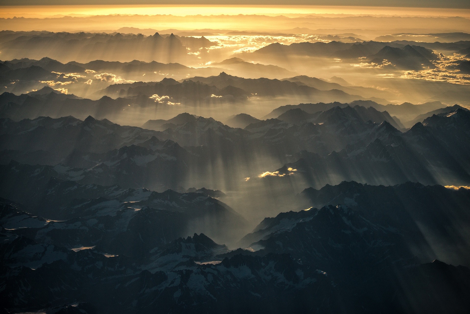 Обои закат, пейзаж, горный рельеф, гора, горный хребет, фото, заставка