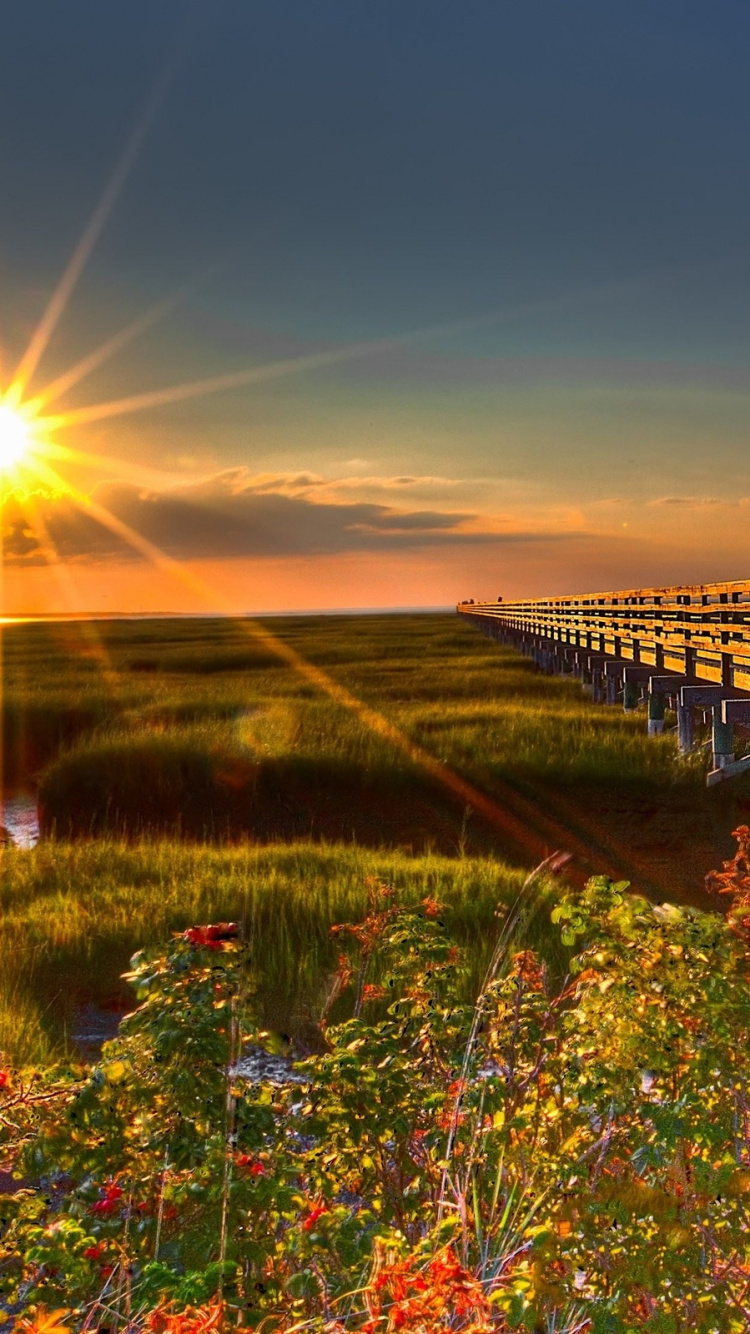 Обои природа, утро, солнечный свет, поле, небо для iPhone 6, 6S, 7, 8, заставка, 750x1334 картинка
