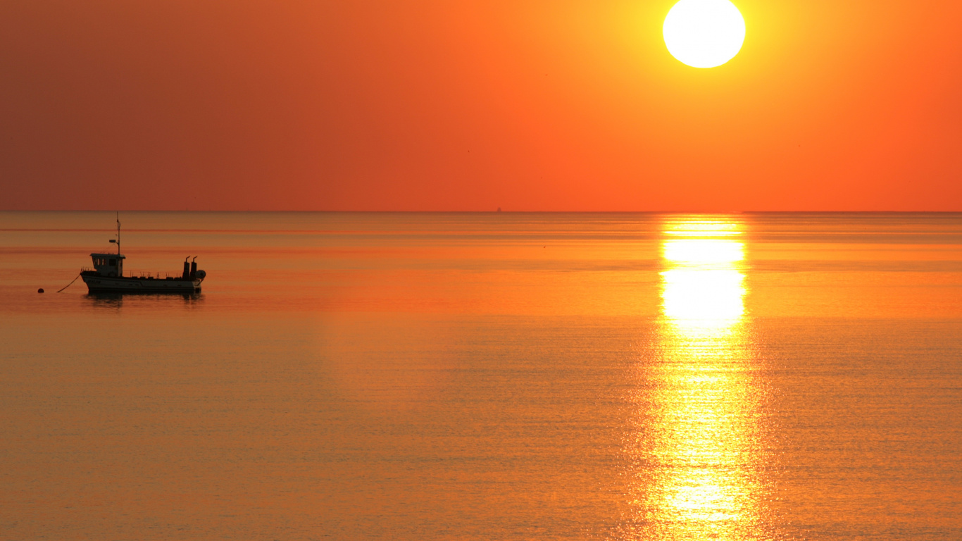 Обои 1366x768 закат, горизонт, восход солнца, солнце, спокойный, HD ready картинка