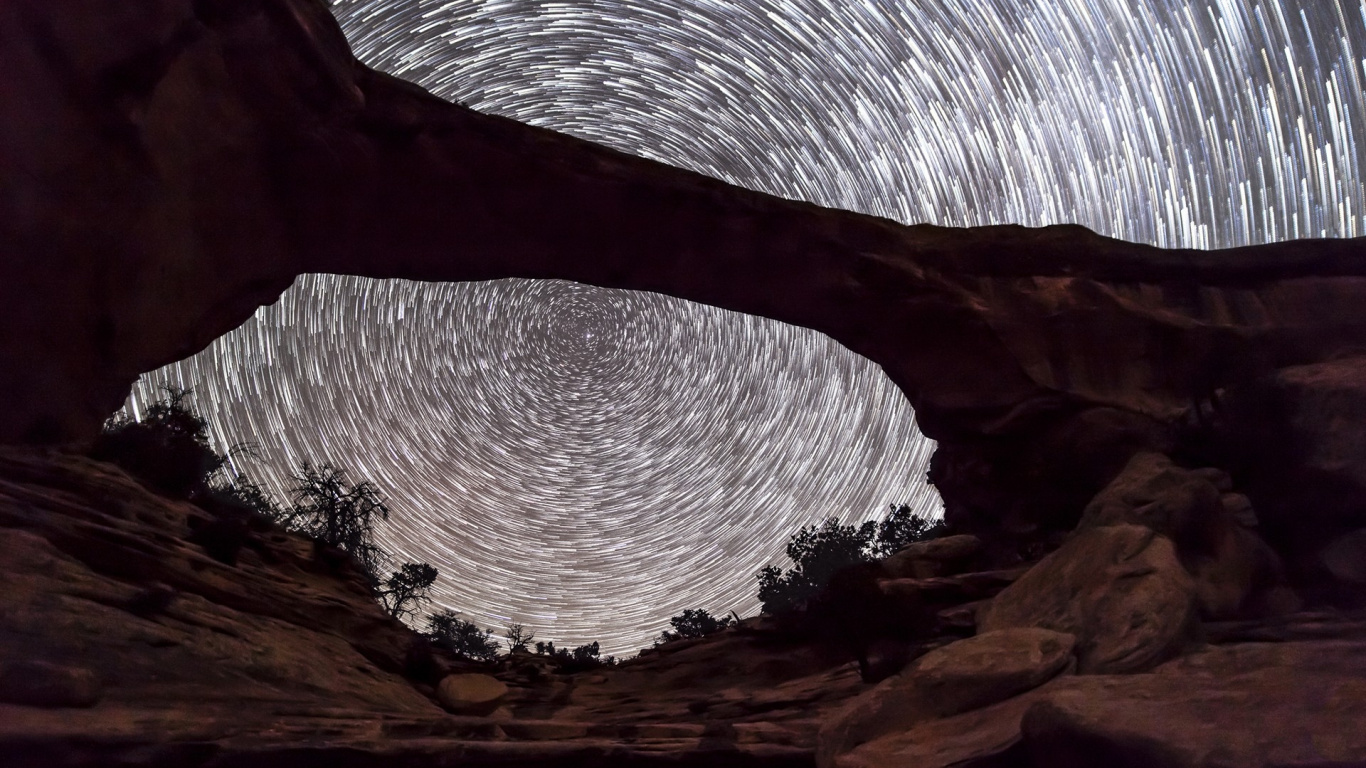 Обои 1366x768 ночь, естественная арка, служба национальных парков, национальный парк каньонлендс, небо, HD ready картинка