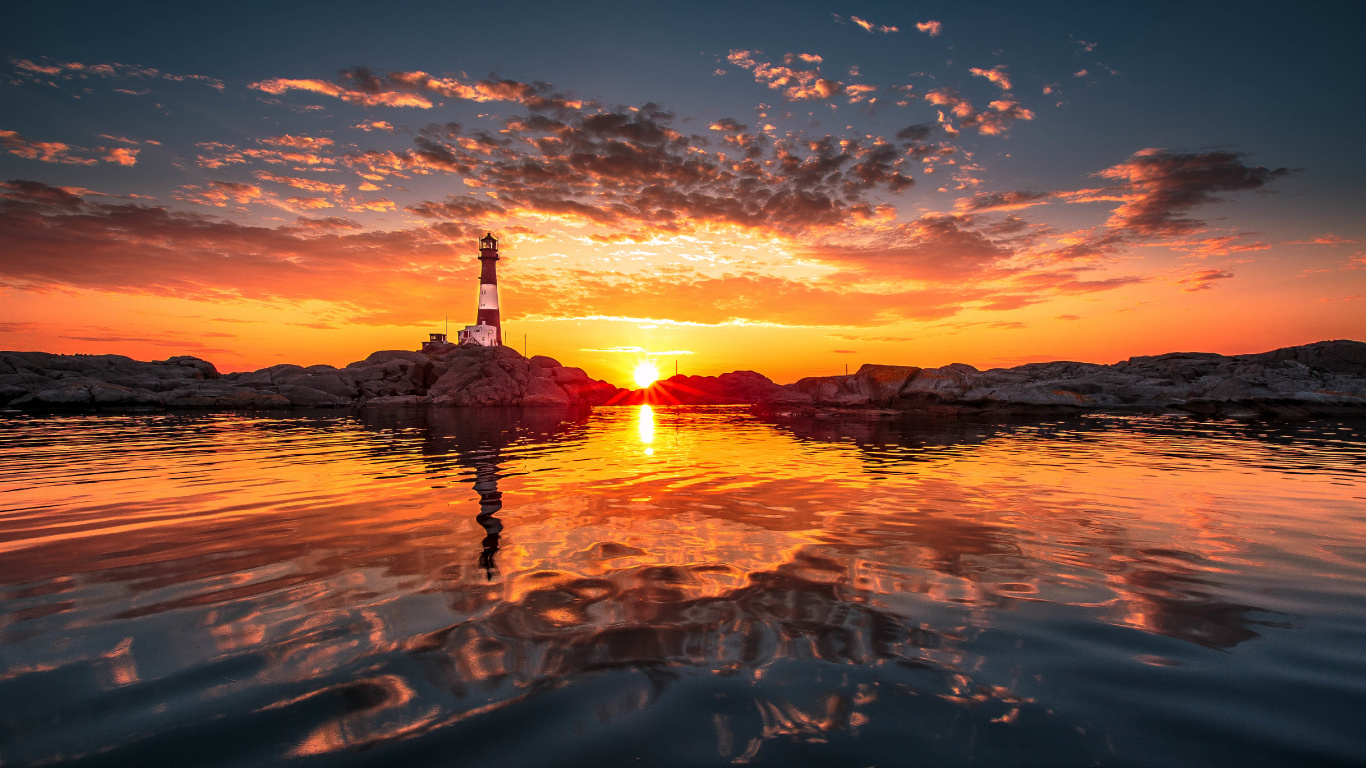 Обои 1366x768 послесвечение, закат, горизонт, восход солнца, отражение, HD ready картинка