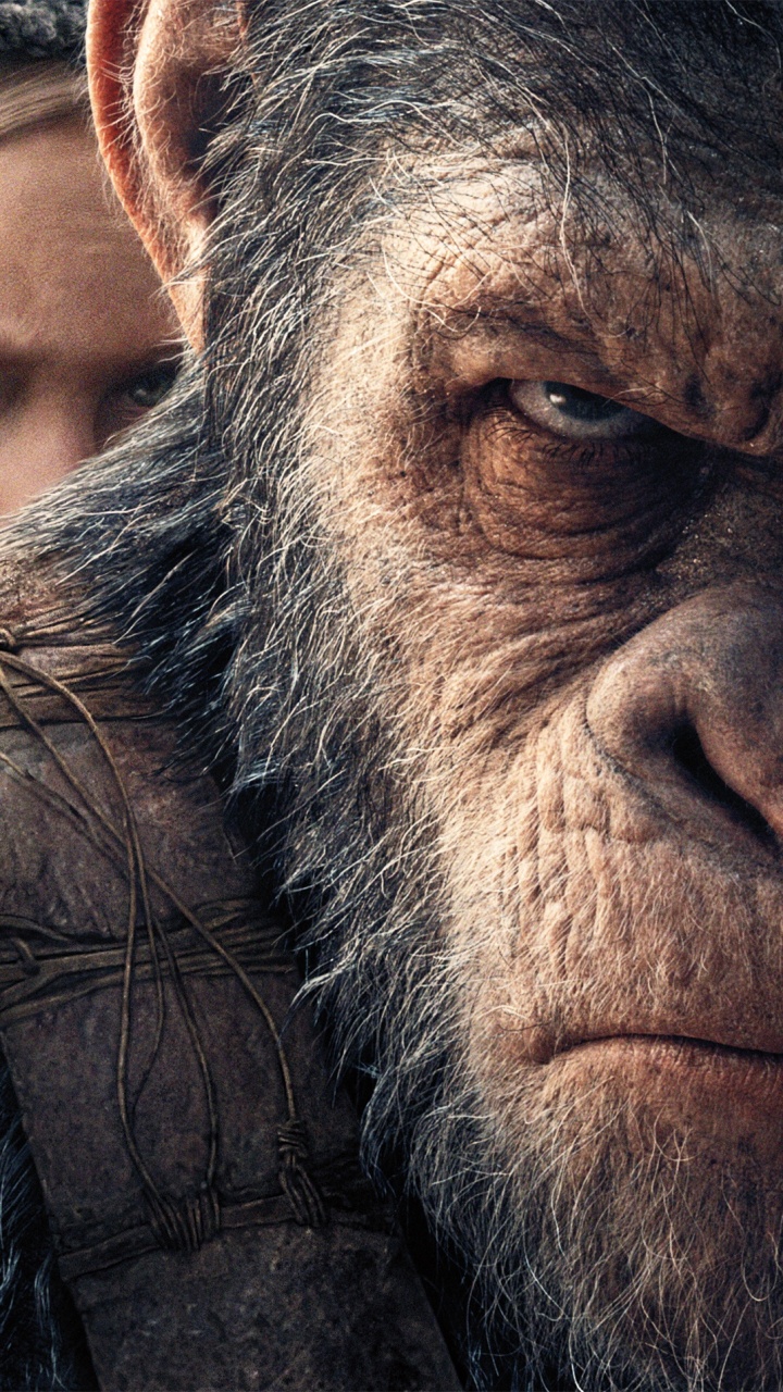 Обои Война за планету обезьян, Планета обезьян, человек, морда, мех для HD Samsung Galaxy S3/J3/J4/J5, Meizu M5, Sony Xperia L1/L2, заставка, 720x1280 картинка