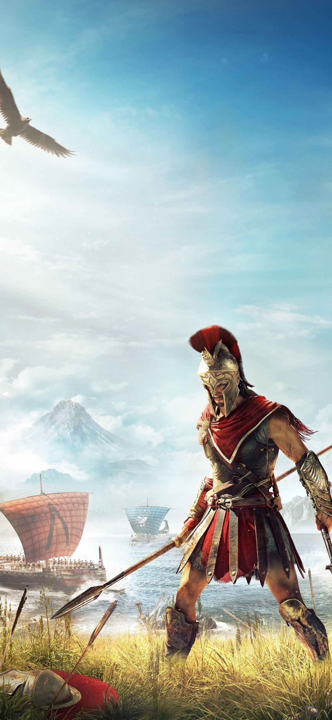 Обои Assassins Creed Odyssey, ubisoft, компьютерная игра, игры, мифология для iPhone X / XS, заставка, 1125x2436 картинка