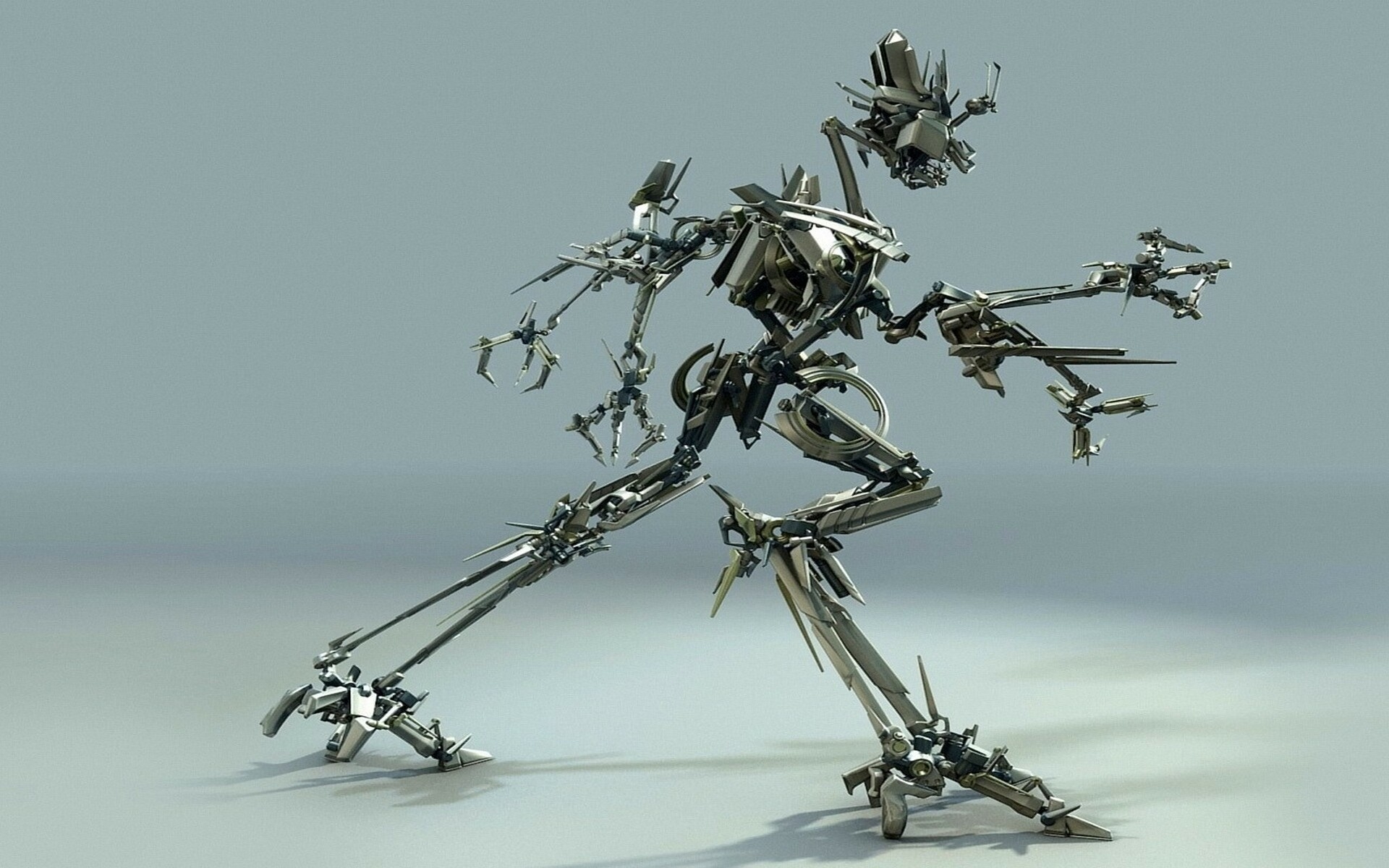 Обои робот, металл, дерево, веточка, конструкция, фото, заставка
