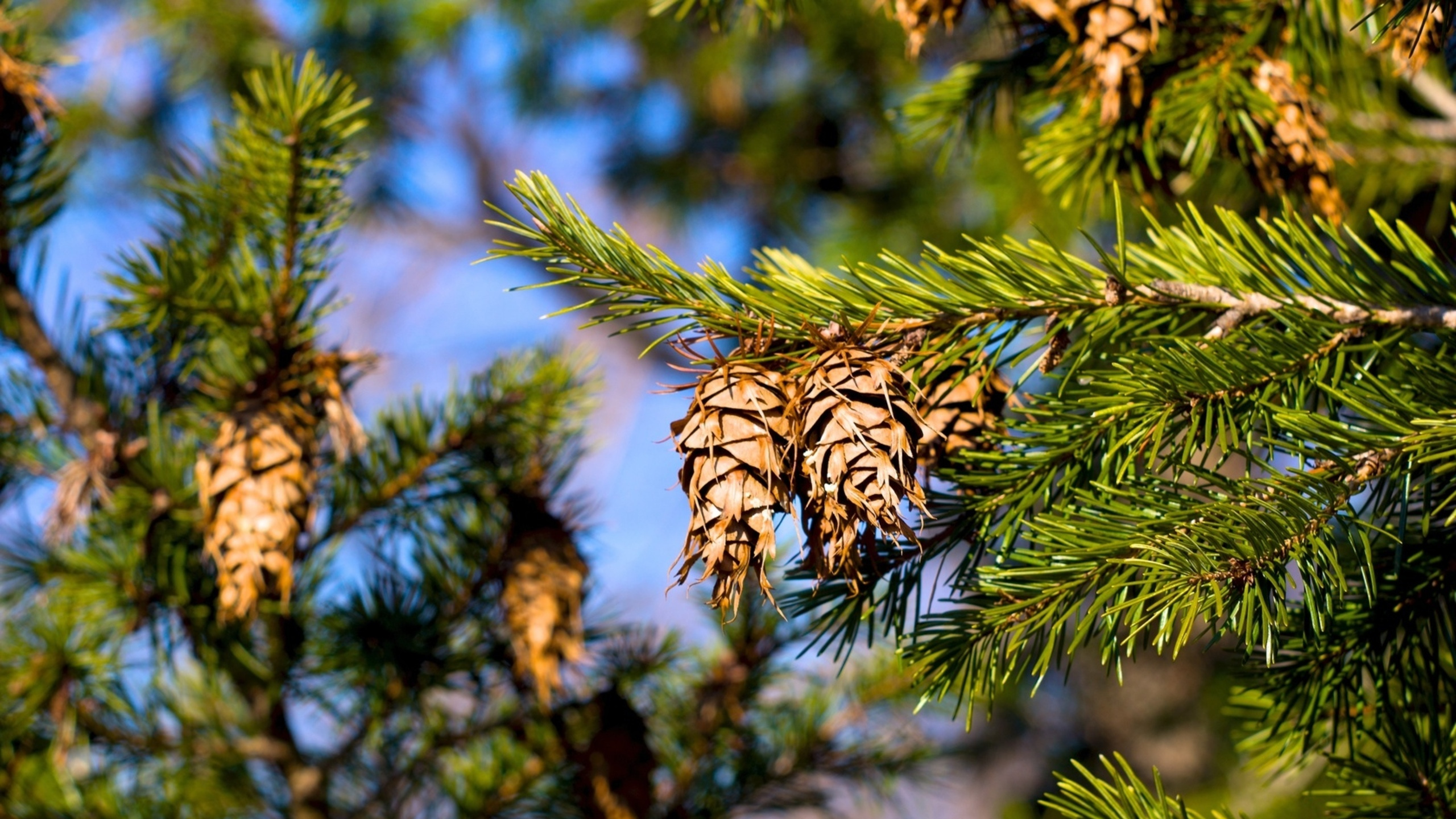Обои 2560x1440 ель, сосна, ветвь, дерево, хвойные конуса, WQHD, QHD, 16:9 картинка