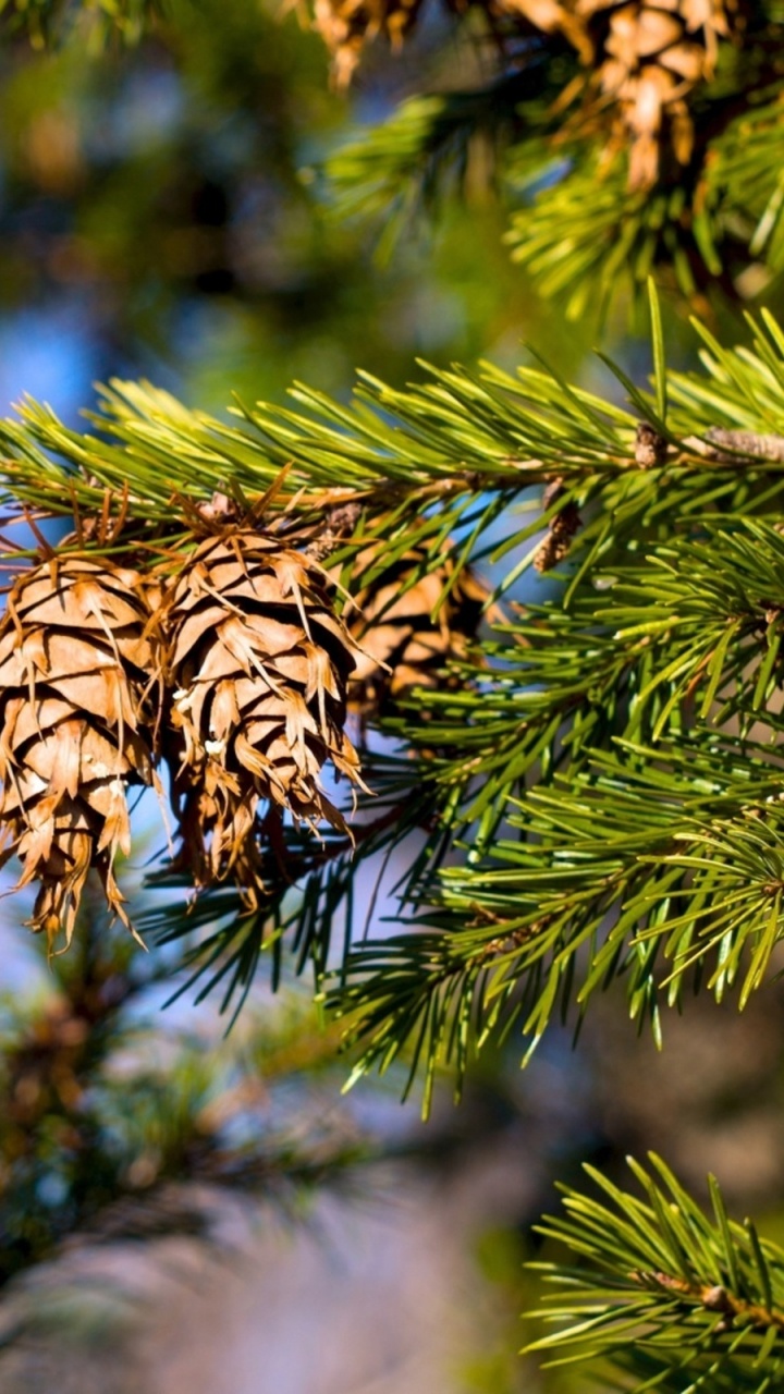 Обои ель, сосна, ветвь, дерево, хвойные конуса для HD Samsung Galaxy S3/J3/J4/J5, Meizu M5, Sony Xperia L1/L2, заставка, 720x1280 картинка