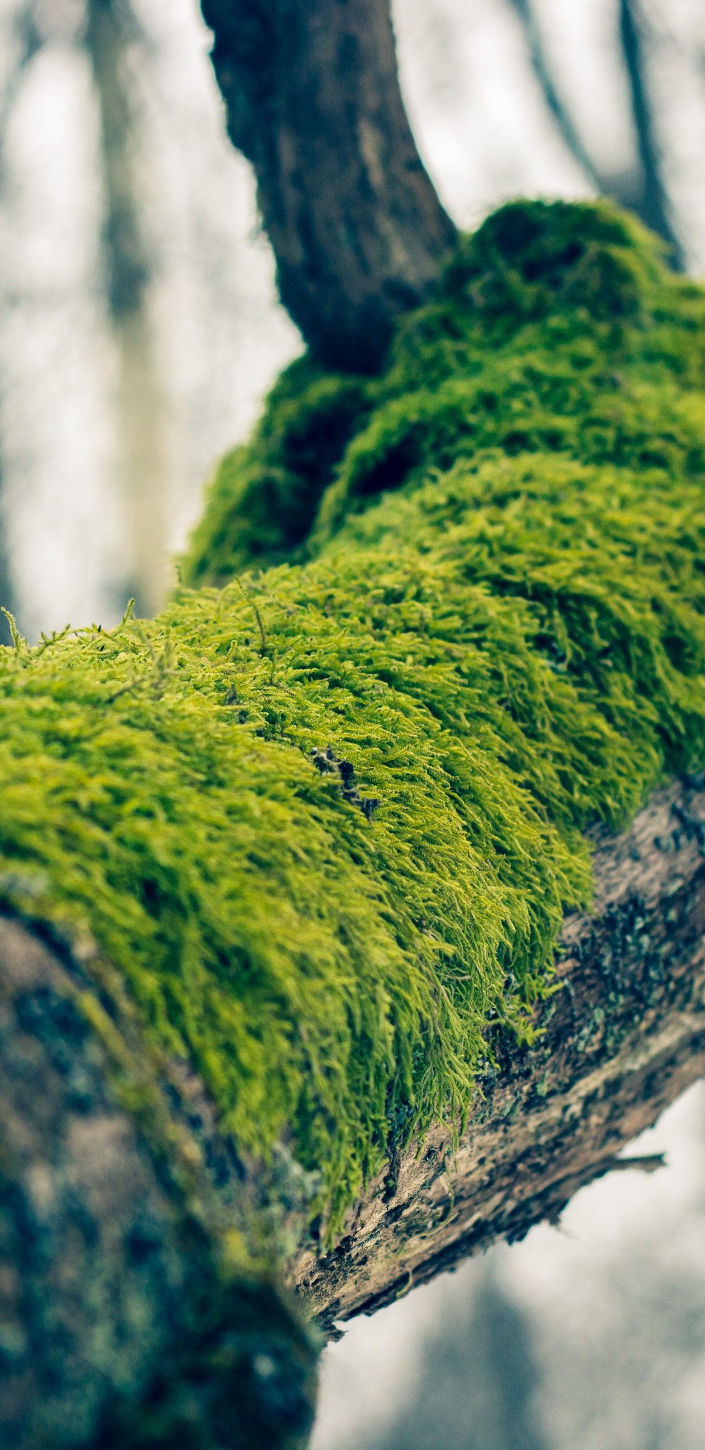 Обои дерево, ветвь, мох, зеленый, вода для Samsung Galaxy S8/S8+/S9/S9+/Note 8/Note 9 QHD, заставка, 1440x2960 картинка