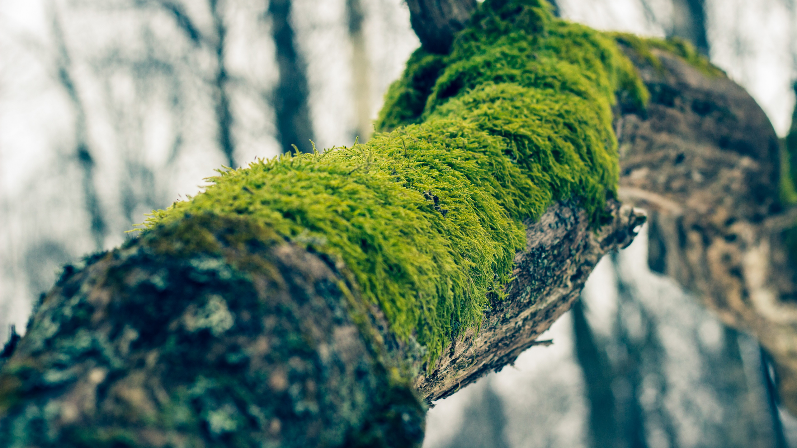 Обои 2560x1440 дерево, ветвь, мох, зеленый, вода, WQHD, QHD, 16:9 картинка