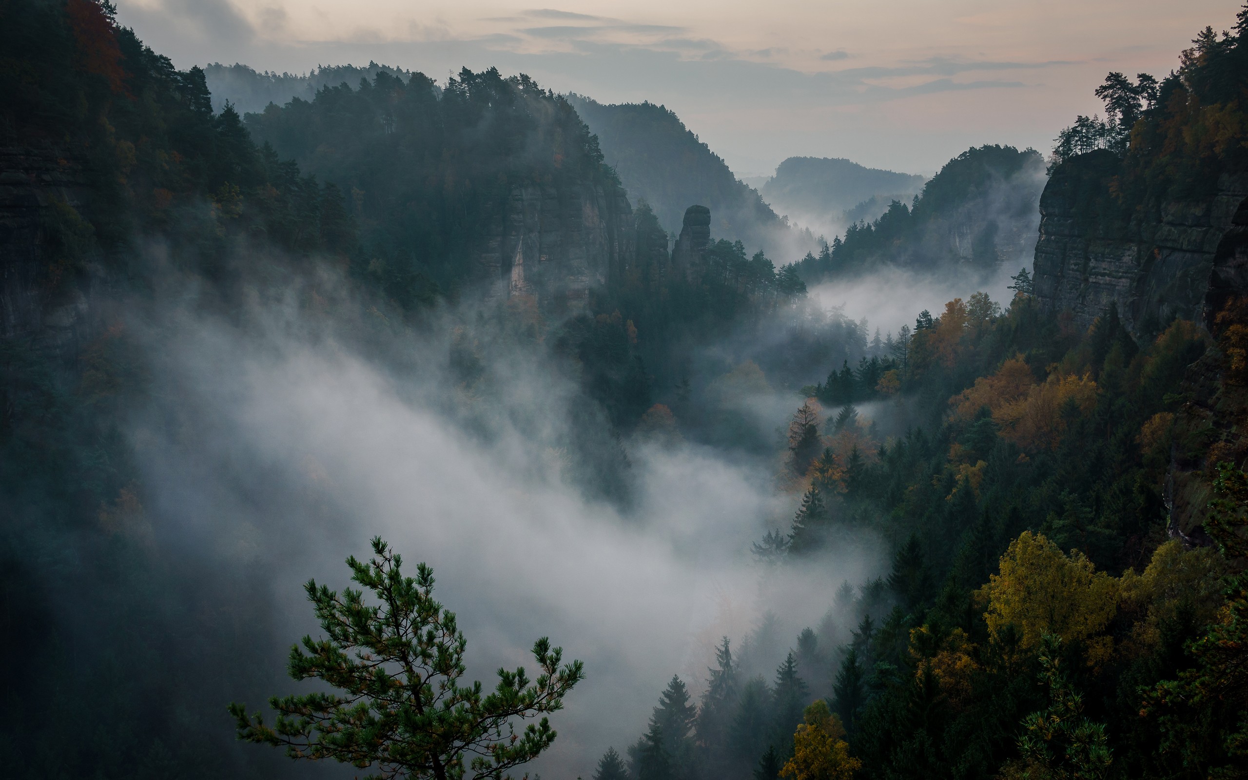 Обои дерево, природа, горный рельеф, гора, туман, фото, заставка