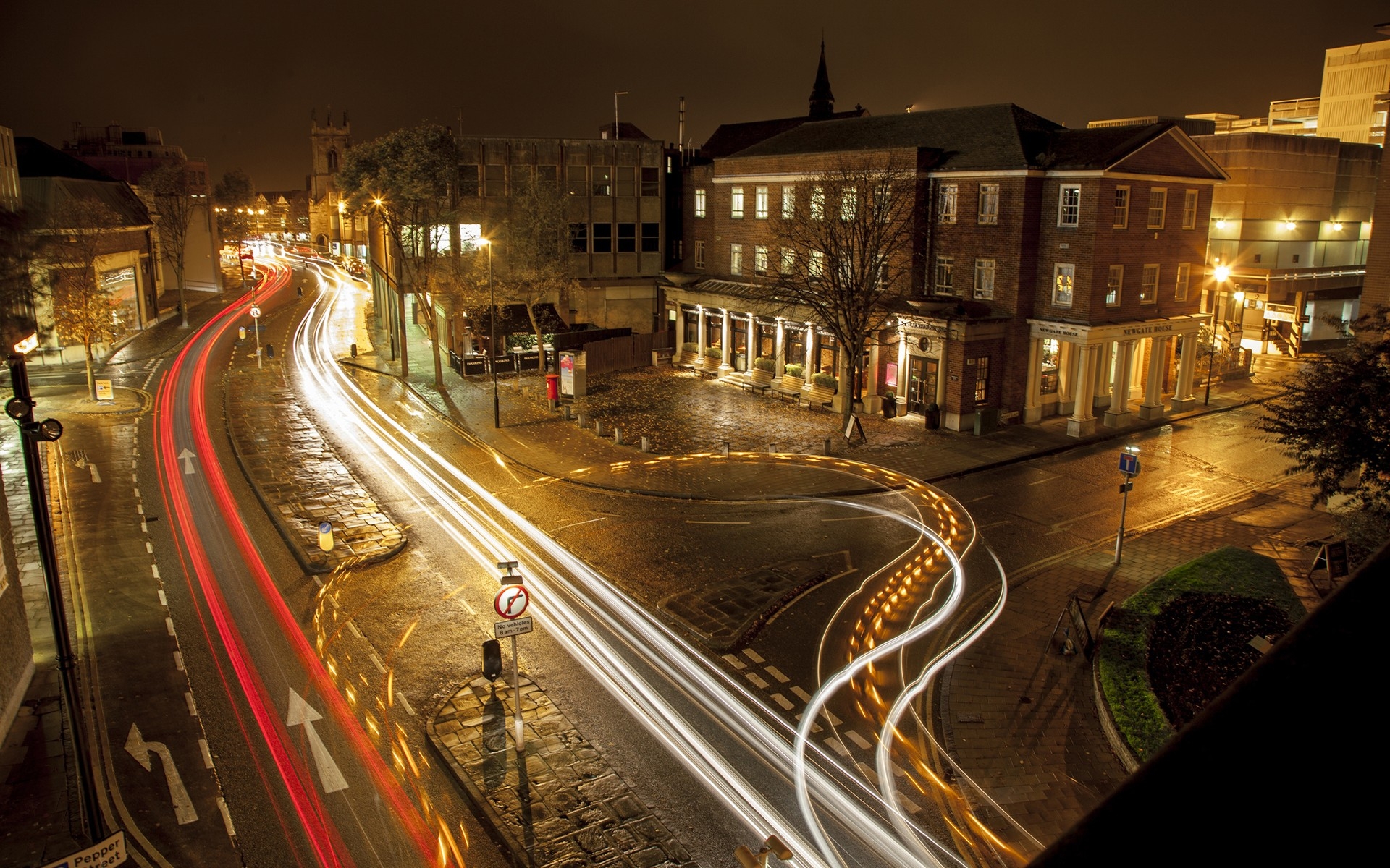Обои Лондон, ночь, свет, городской район, дорога, фото, заставка