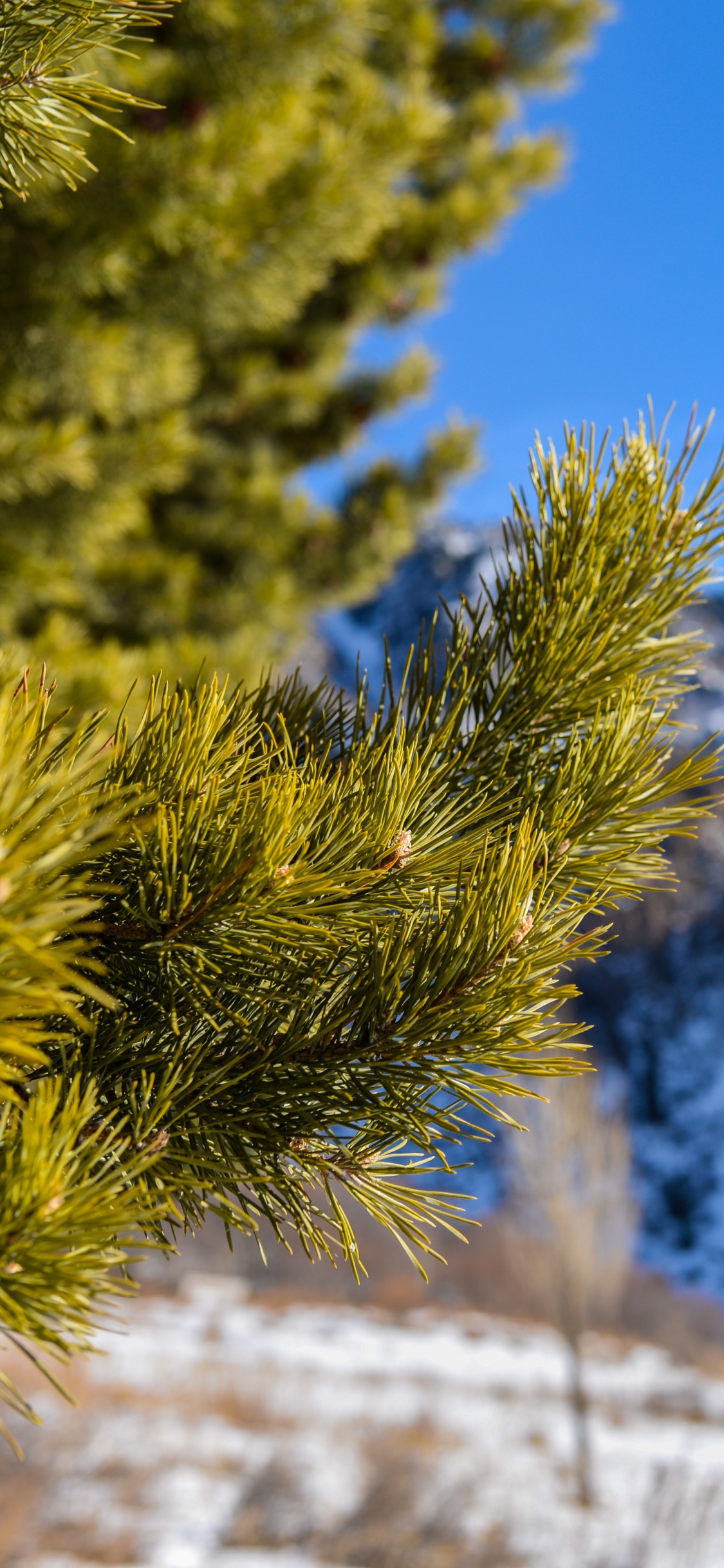 Обои дерево, зима, дикая местность, гора, хвойное дерево для iPhone X / XS, заставка, 1125x2436 картинка