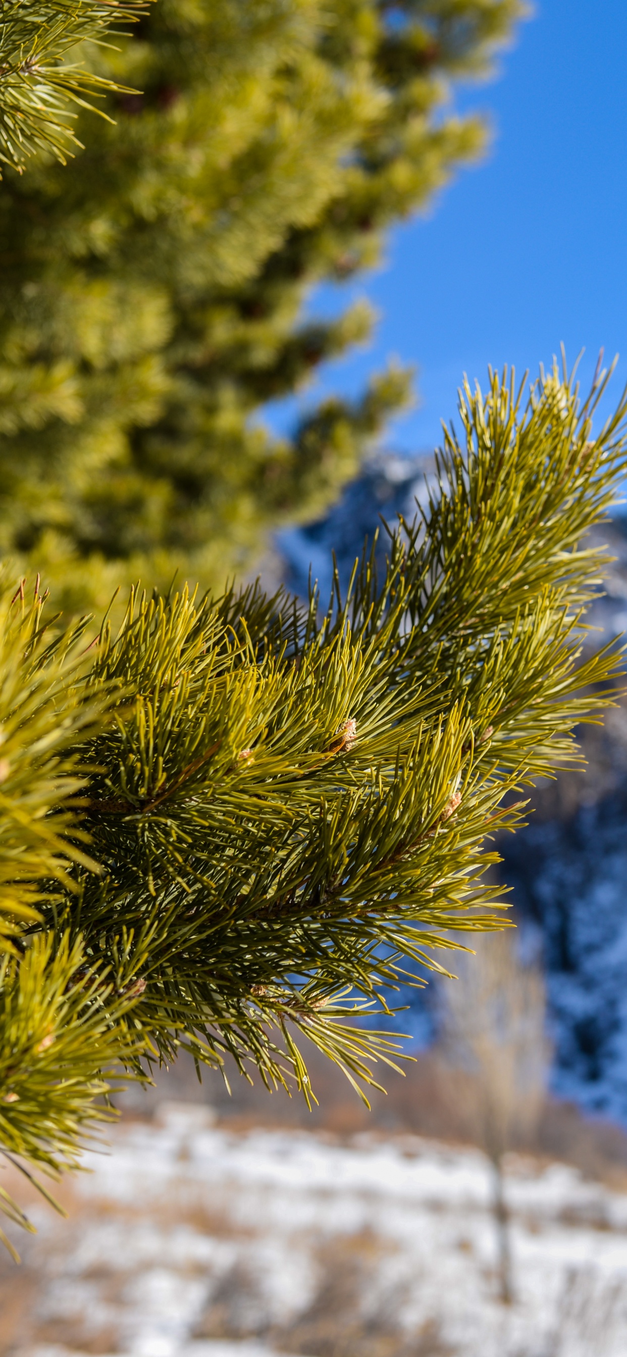Обои дерево, зима, дикая местность, гора, хвойное дерево для iPhone XS Max, заставка, 1242x2688 картинка