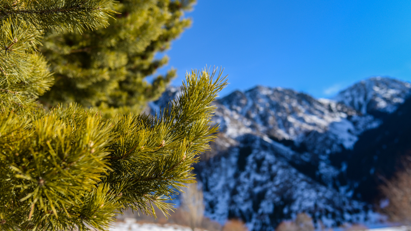 Обои 1366x768 дерево, зима, дикая местность, гора, хвойное дерево, HD ready картинка