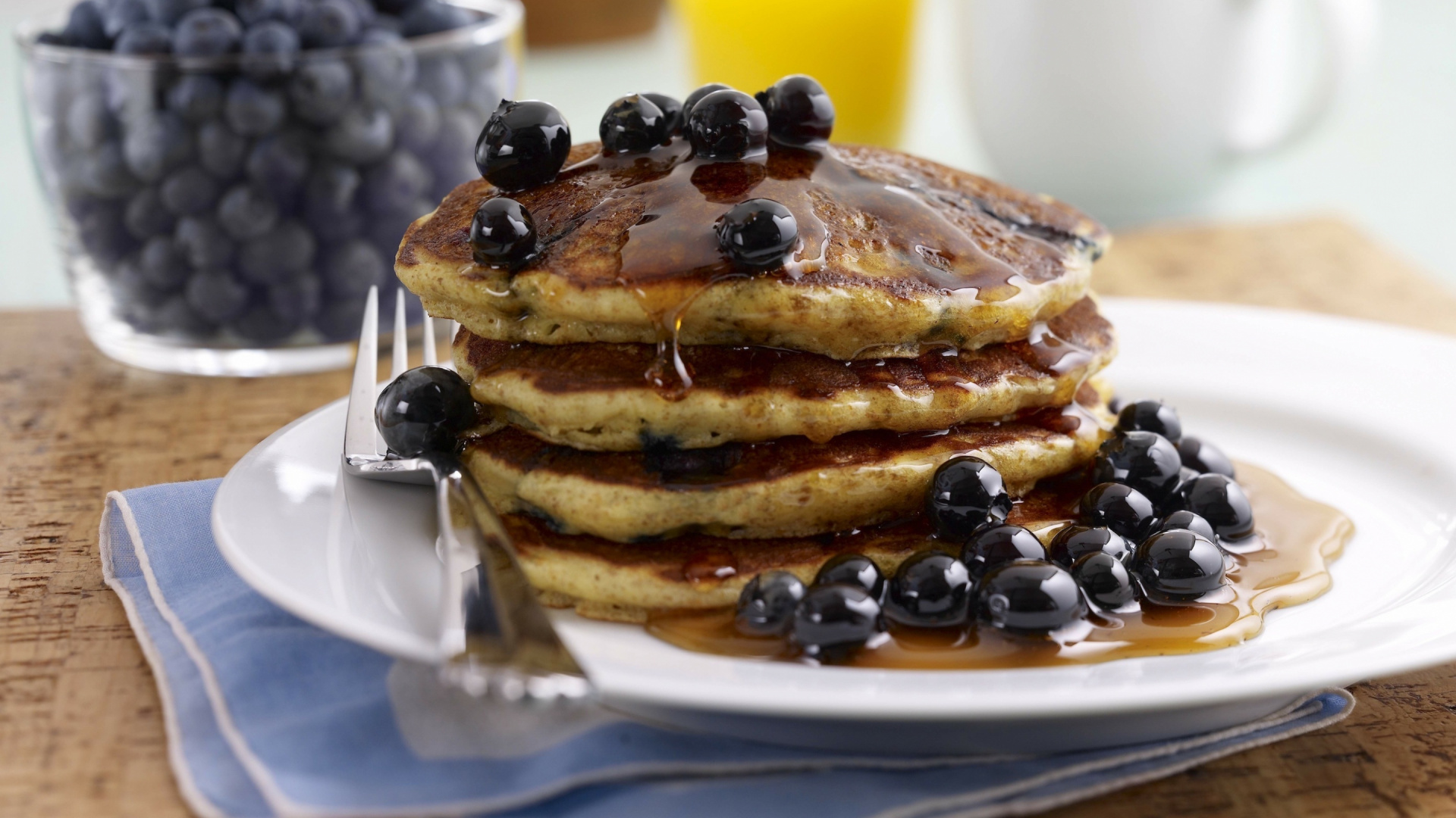 Обои 1920x1080 блин, завтрак, Черника, пища, поздний завтрак, Full HD, HDTV, 1080p 16:9 картинка