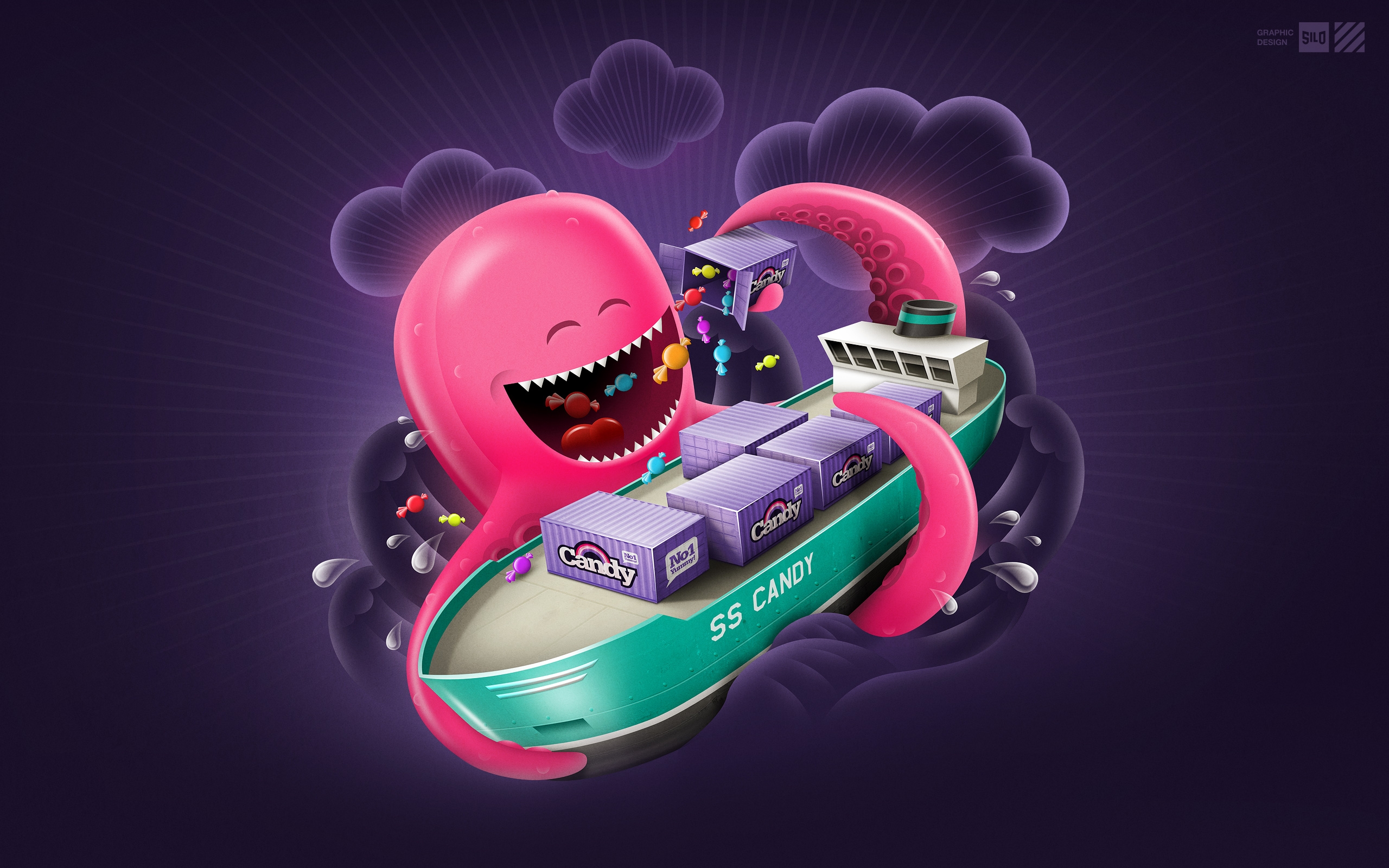 Обои космос, пурпурный цвет, пурпур, осьминог, пространство, фото, заставка