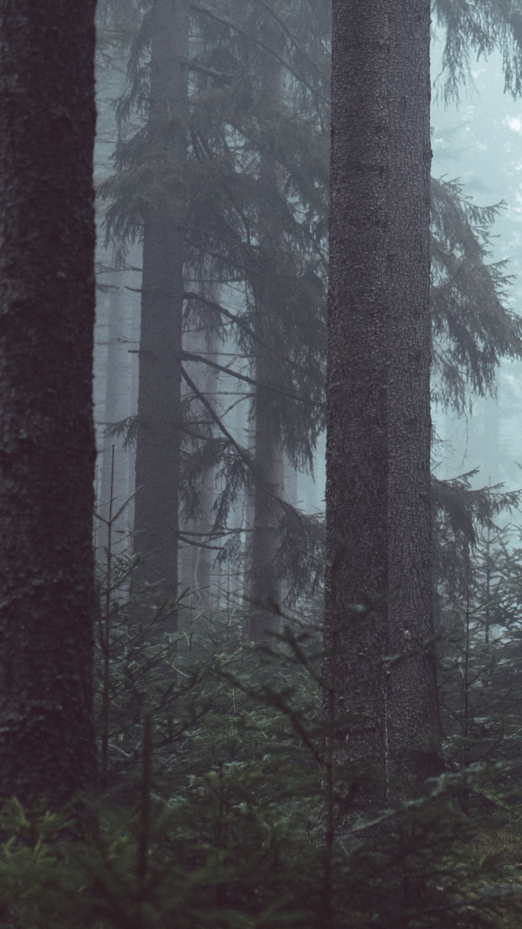 Обои дерево, лес, лесистая местность, стена, дымка для iPhone 6, 6S, 7, 8, заставка, 750x1334 картинка