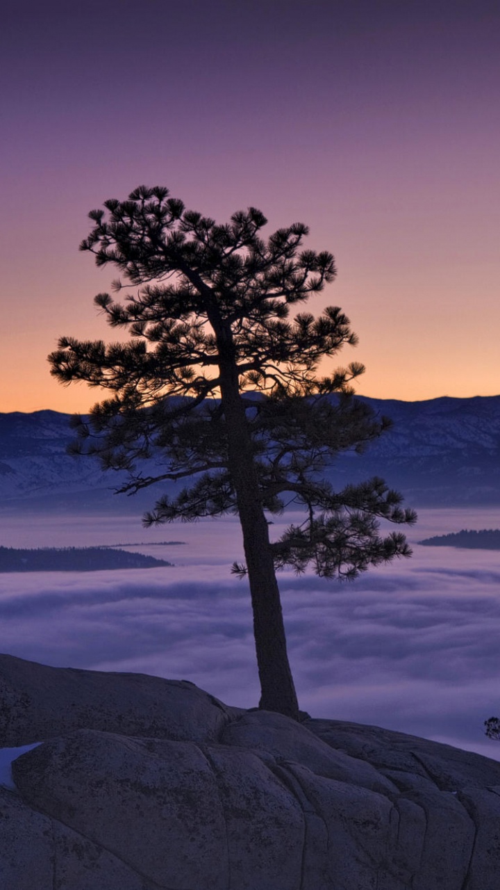 Обои озеро Тахо, природа, дерево, утро, восход солнца для HD Samsung Galaxy S3/J3/J4/J5, Meizu M5, Sony Xperia L1/L2, заставка, 720x1280 картинка