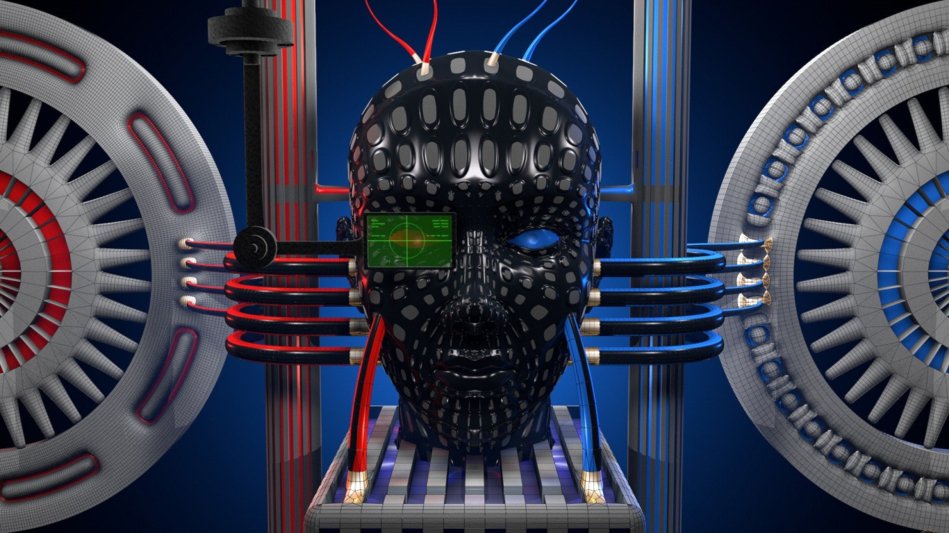Обои 1366x768 робот, цифровое искусство, голова, космос, пространство, HD ready картинка