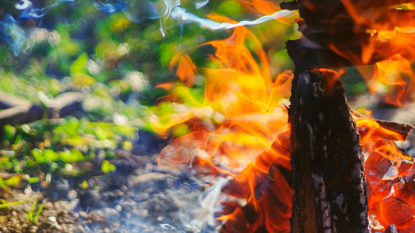 Обои 1366x768 вода, огонь, костер, дерево, солнечный свет, HD ready картинка