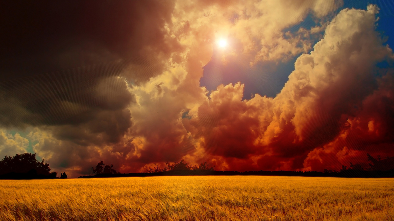 Обои 1366x768 закат, восход солнца, природа, облако, поле, HD ready картинка