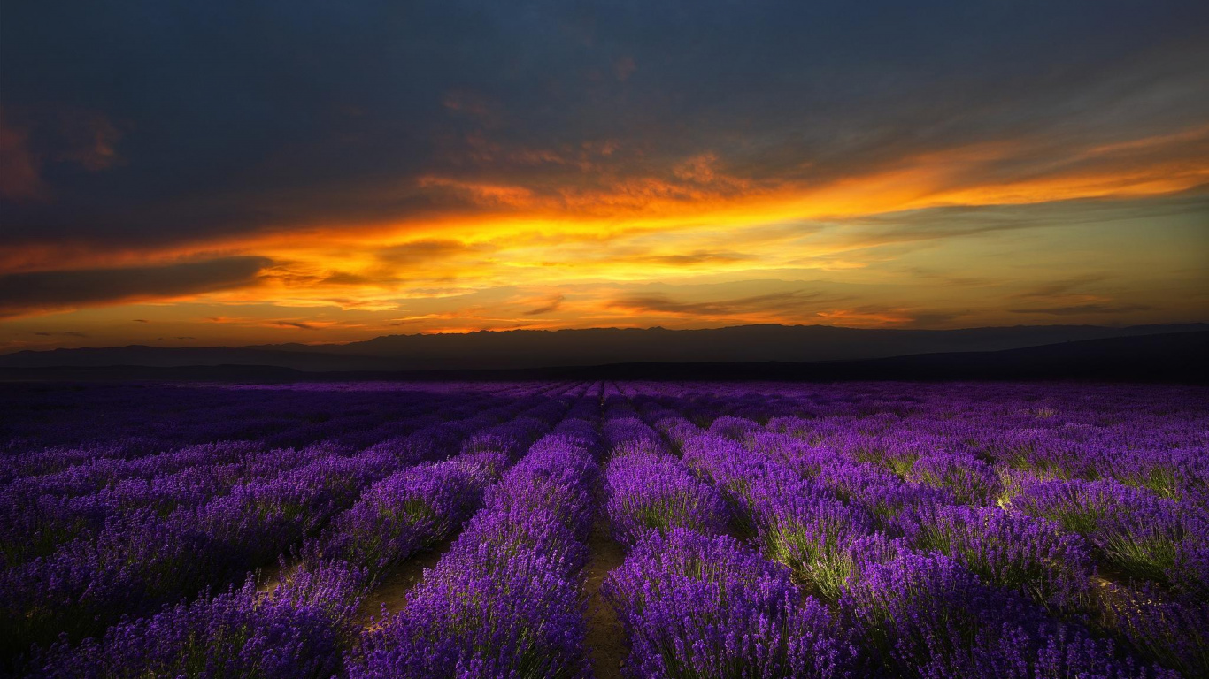 Обои 1366x768 английский лаванды, закат, лаванда, пурпур, горизонт, HD ready картинка