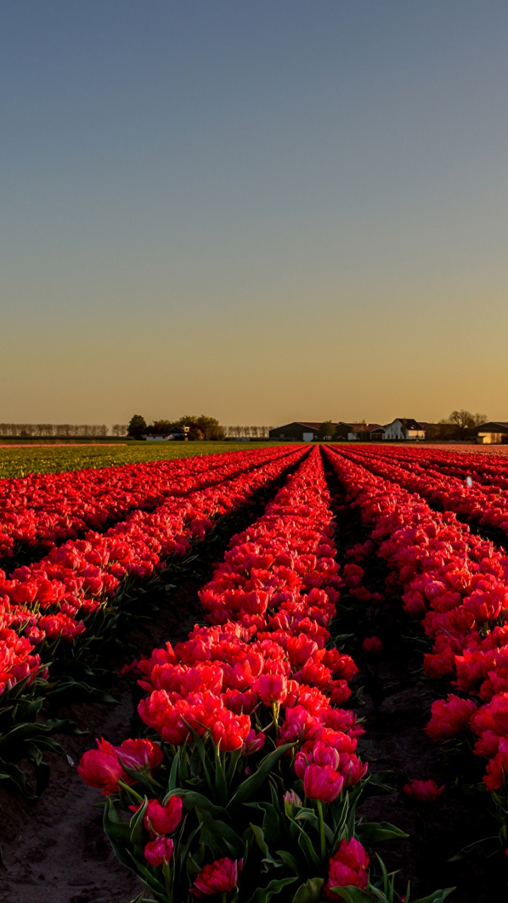 Обои тюльпаны, цветок, Нидерланды, поле, красный цвет для HD Samsung Galaxy S3/J3/J4/J5, Meizu M5, Sony Xperia L1/L2, заставка, 720x1280 картинка