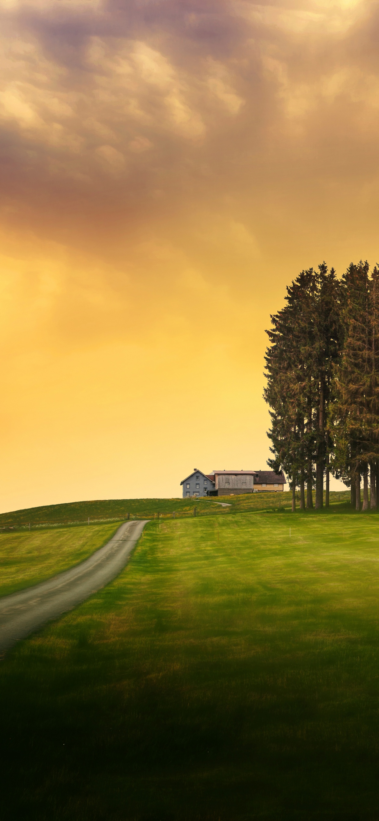 Обои природа, дерево, холм, облако, сенокосное угодье для iPhone XS Max, заставка, 1242x2688 картинка