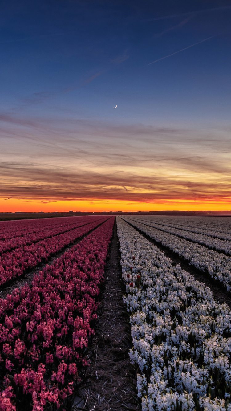 Обои Каллантсог, закат, поле, горизонт, цветок для iPhone 6, 6S, 7, 8, заставка, 750x1334 картинка