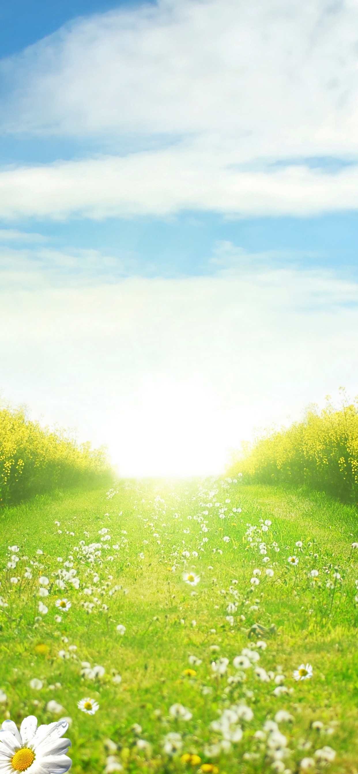 Обои луг, поле, сенокосное угодье, солнечный свет, горчичный завод для iPhone XS Max, заставка, 1242x2688 картинка