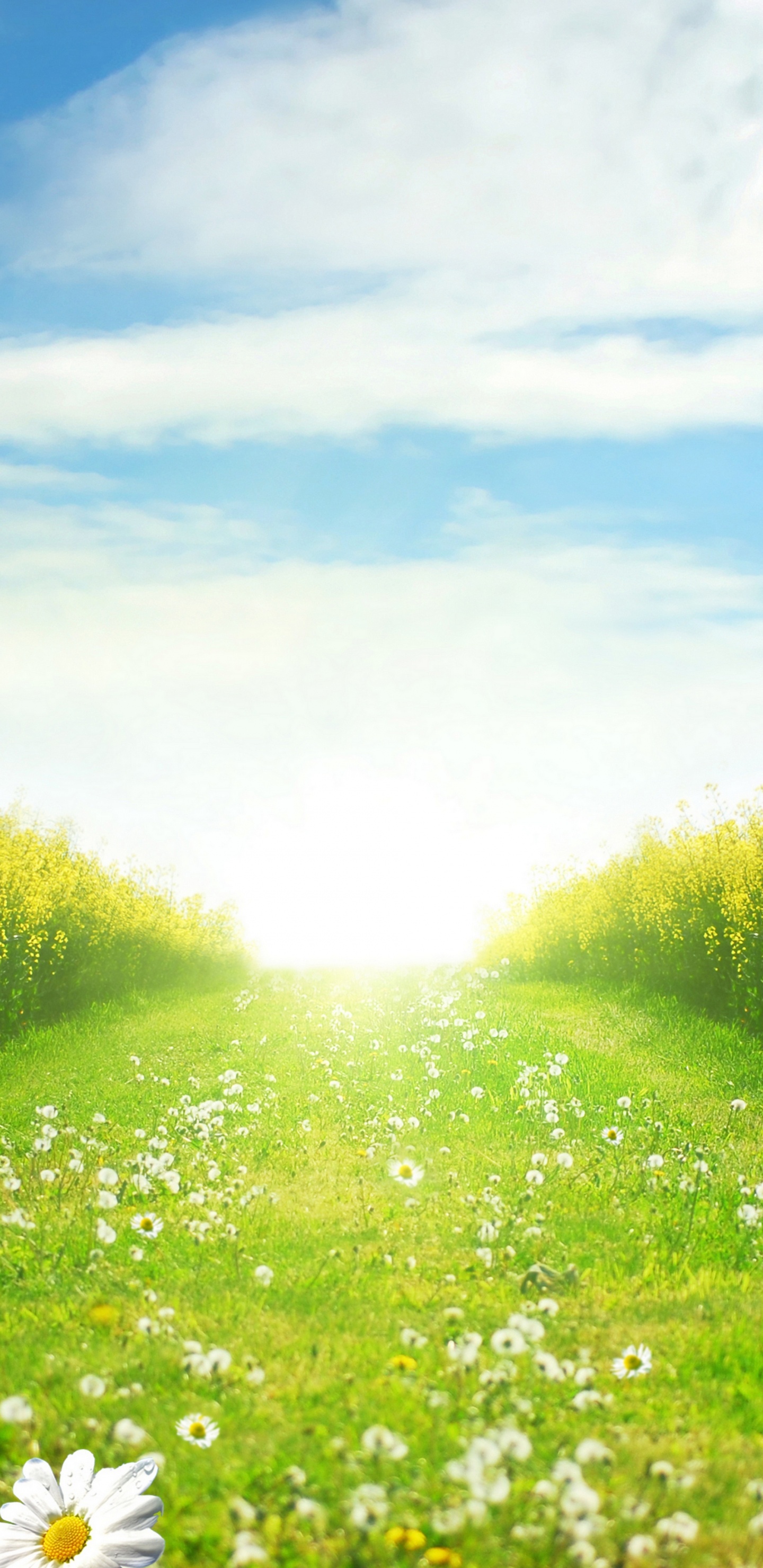 Обои луг, поле, сенокосное угодье, солнечный свет, горчичный завод для Samsung Galaxy S8/S8+/S9/S9+/Note 8/Note 9 QHD, заставка, 1440x2960 картинка