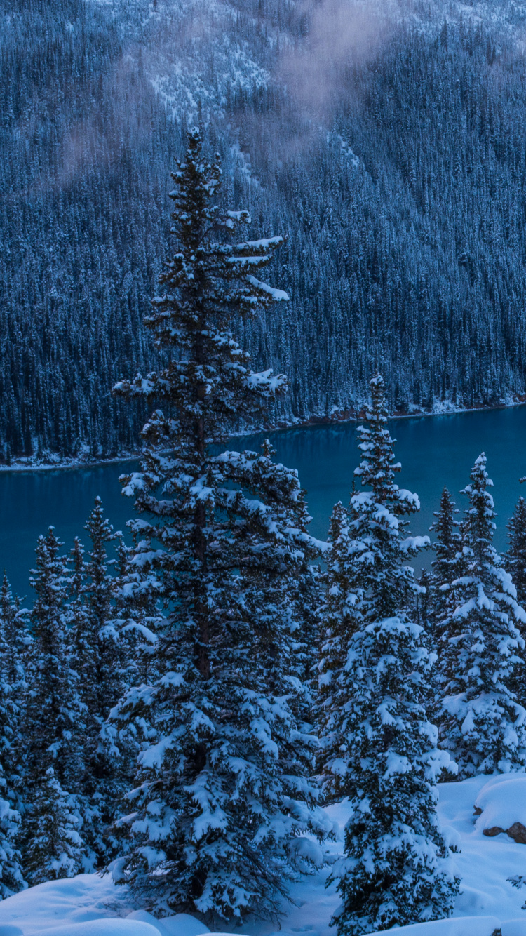 Обои озеро пейто, банфф, природа, снег, зима для iPhone 6, 6S, 7, 8, заставка, 750x1334 картинка